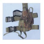 Ein offenes Holster mit Sicherungsriemen & Magazintasche