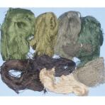 Dieses Set besteht aus ca. 2,7 kg Jute Fäden in 7 verschiedenen Farben, einem Netz für den Oberkörper und einem für die Kopfbedeckung zum befestigen der Jute Fäden.