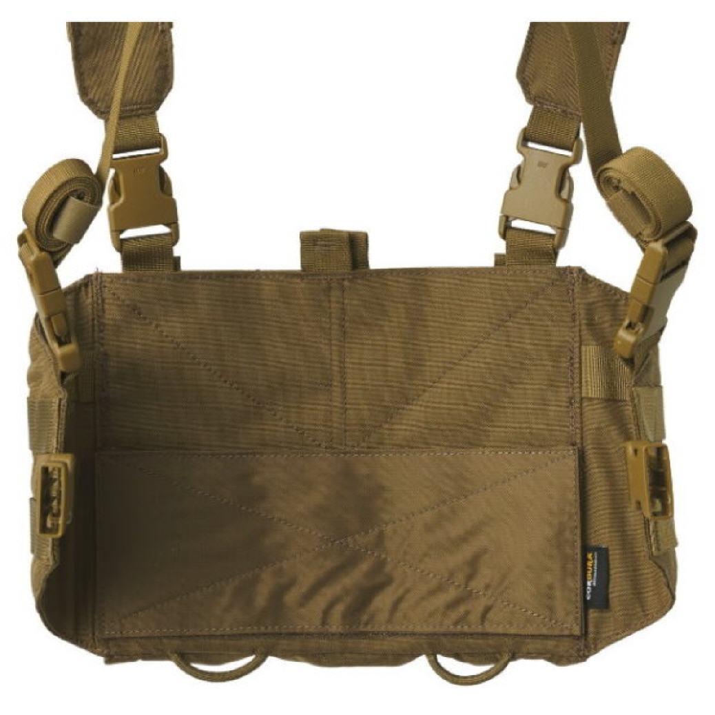 Das Chicom Chest Rig verfügt über ein unverwechselbares Design und drei Taschen mit Klettverschluss. Die Klappen können abgenommen und durch im Set enthaltene Abzieher ersetzt werden. Die Brusttaschen bieten Platz für AK/AR-Magazine. Dies ist die Basisversion, die in vielerlei Hinsicht erweitert werden kann. Auf beiden Seiten, von innen und außen, befinden sich MOLLE/PALS-Paneele, in denen Sie zusätzliche Taschen, Cargotaschen, Granatentaschen usw. unterbringen können. Die Anzahl der Munitionsplätze kann bei Bedarf von drei auf fünf erhöht werden. Zusätzlich kann ein Erste-Hilfe-Set oder eine kleine Tasche unter dem Chest Rig befestigt werden. Im Inneren des Chicom befindet sich eine flache Tasche für Dokumente oder Einlagen aus unserem VIS-System, die mit einem weichen Klettverschluss gepolstert ist.